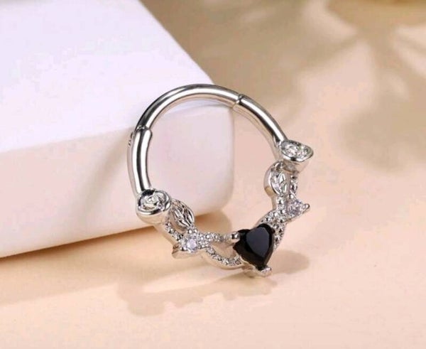 ✨ Elegant Design: This 10mm rose detail hoop is crafted from 1.2 gauge surgical steel. It features a delicate rose design, perfect for adding a touch of nature to your ear jewelry. The size is ideal for septum, daith, and other ear piercings.