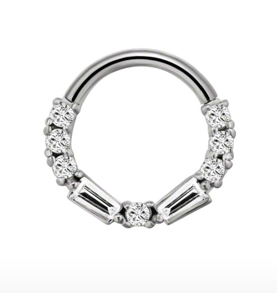 Silver diamond hinged hoop